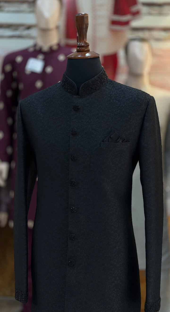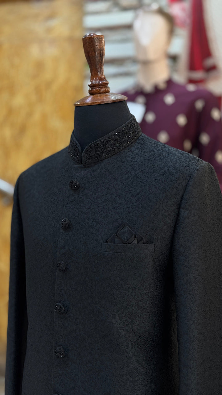 Jamsori Black Sherwani Set